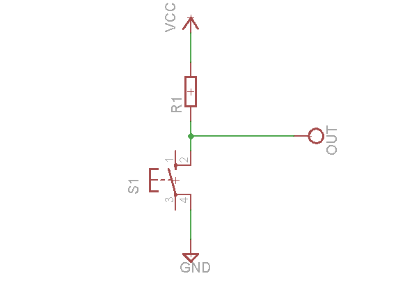 gambar diatas, merupakan rangkaian push button dengan resistor, dimana saat push button tidak ditekan, output akan menghasilkan logika dari GND atau 0, dan apabila push button di tekan maka Arus yang dari VCC akan mengalir dan tidak menuju ke GND karena terhalangi oleh Resistor sehingga Output yang dihasilkan berlogika VCC atau logika 1.
