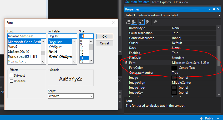 kemudian kita dapat mendesign Fontnya pada menu properties yang berada disebelah kanan, seperti contoh saya akan merubah ukuran font nya