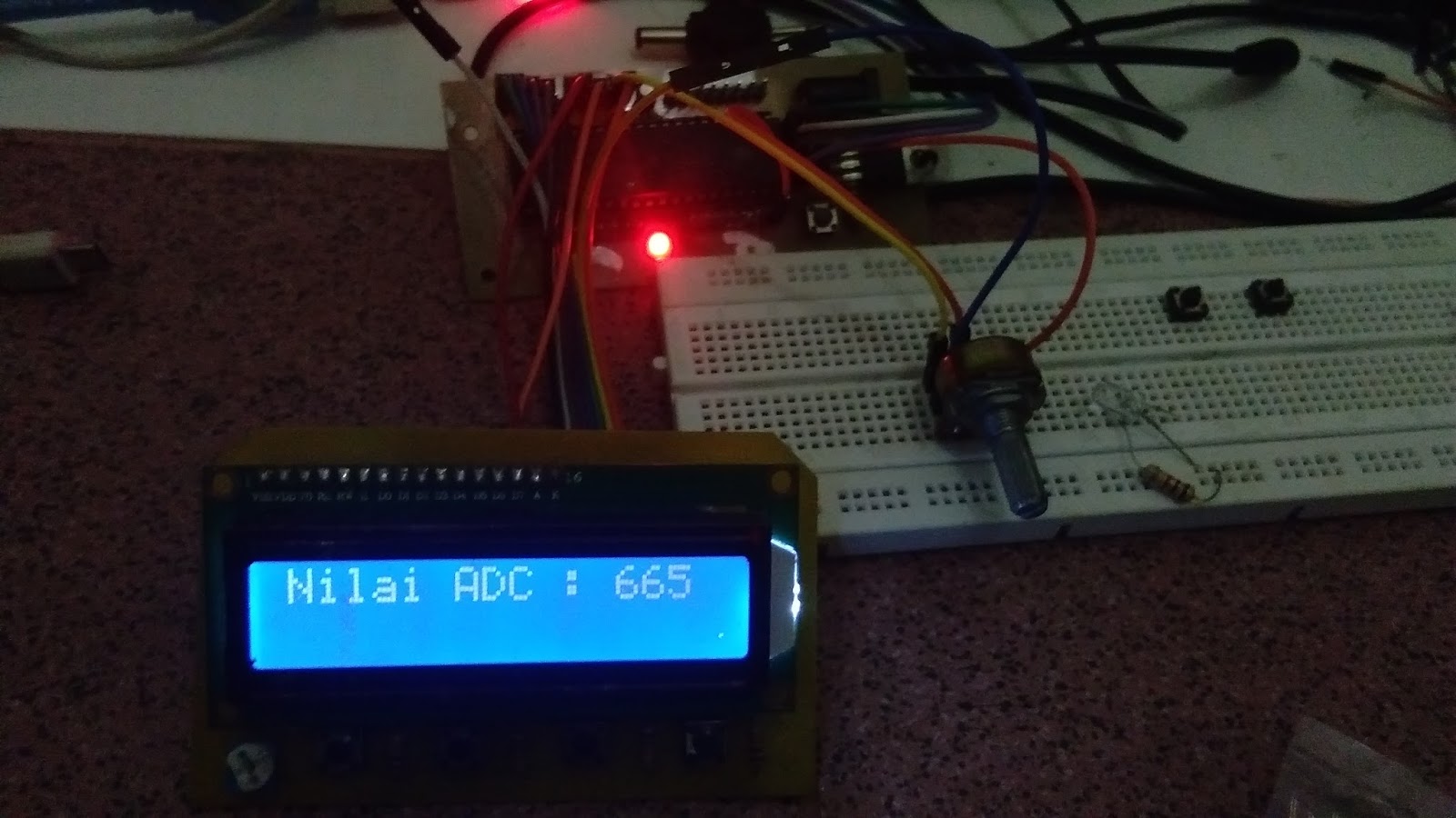 sekarang saya akan mencoba untuk melakukan Pembacaan nilai ADC pada Atmega16 dan ditampilkan pada LCD 16 x 2