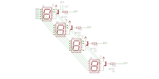 seven segmen dirangkai parallel untuk input tiap kaki a sampai g, lalu powernya memiliki input sendiri, dan kita menggunakan fungsi pewaktuan untuk mengakali kerja seven segmen, karena pada dasarnya program hanya bisa menjalankan satu eksekusi dalam satu waktu. dengan waktu yang tepat, seven segmen yang di parallel bisa menampilkan angka yang berbeda dan waktu yang sama terlihat oleh kita.