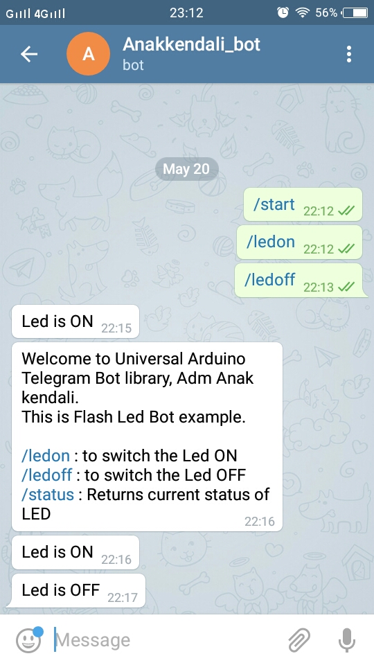 bot.sendMessage(chat_id, "Led is OFF", "");