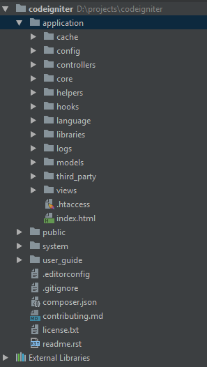 langkah pertama: download terlebih dahulu framework codeigniter melalui Link ini. setelah berhasil di download dan melakukan extract maka seperti ini lah susunan folder yang terdapat dalam framework codeigniter.