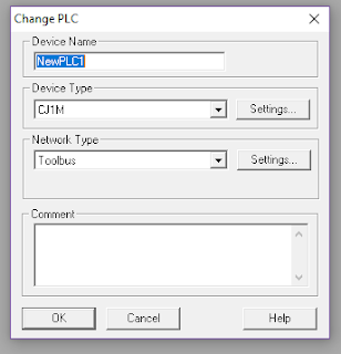 silahkan di kasih nama bebas device name nya, tapi tidak boleh di spasi, untuk device typenya karena kita tidak menggunakan hardware secara langsung jadi bebas sajalah pilih yang mana, saya pilih default saja CJ1M, network type juga biarkan saja karena kita cuma mau menggunakan simulasi.